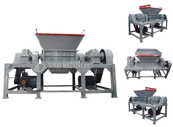3. The two cutting rotors powerfully grab the feed material, and no matter the feed material is large piece of hard plastic or heavy tires, this machine can easily shred them into small pieces;